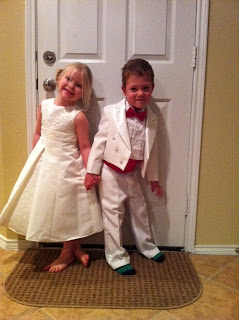 The future Mr. Q and Ms. U. Let me explain. During the week of fairy-tales at the boys school they have a wedding for the letters Q and U. Since they are always together it's fun to pretend they get married. Reed was chosen to be Mr. Q and our friend Morgan was chosen to be Miss U.